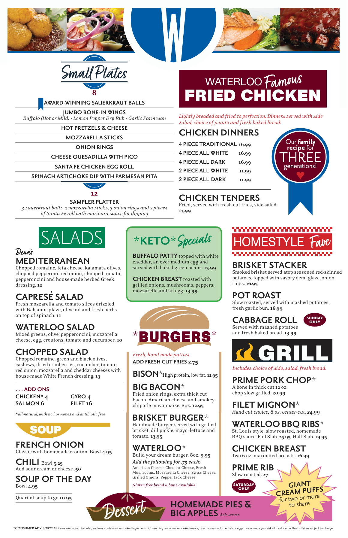 At The Waterloo Restaurant and Catering, we proudly make food fresh daily. Check out our famous BBQ Ribs, Bison Burgers, and our new New York Club. Experience Waterloo Restaurant and Catering, every day and see what everyone is talking about.