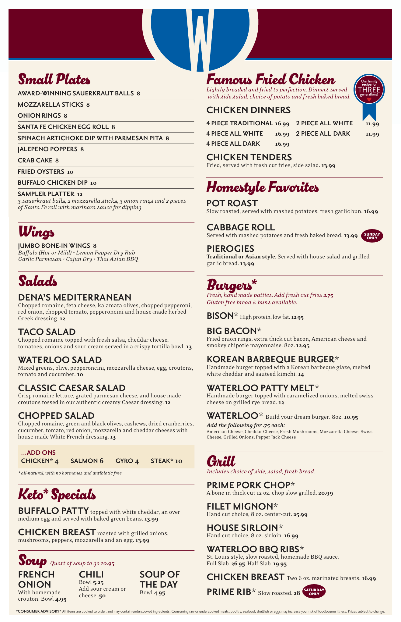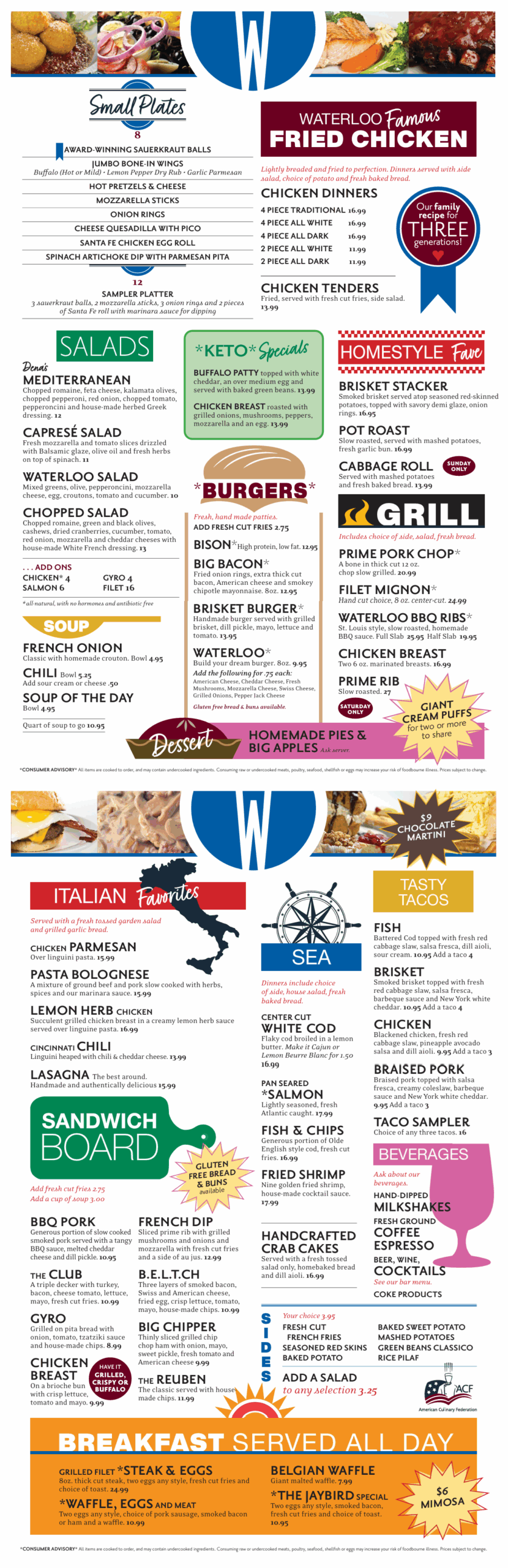 At The Waterloo Restaurant and Catering, we proudly make food fresh daily. Check out our famous BBQ Ribs, Bison Burgers, and our new New York Club. Experience Waterloo Restaurant and Catering, every day and see what everyone is talking about.